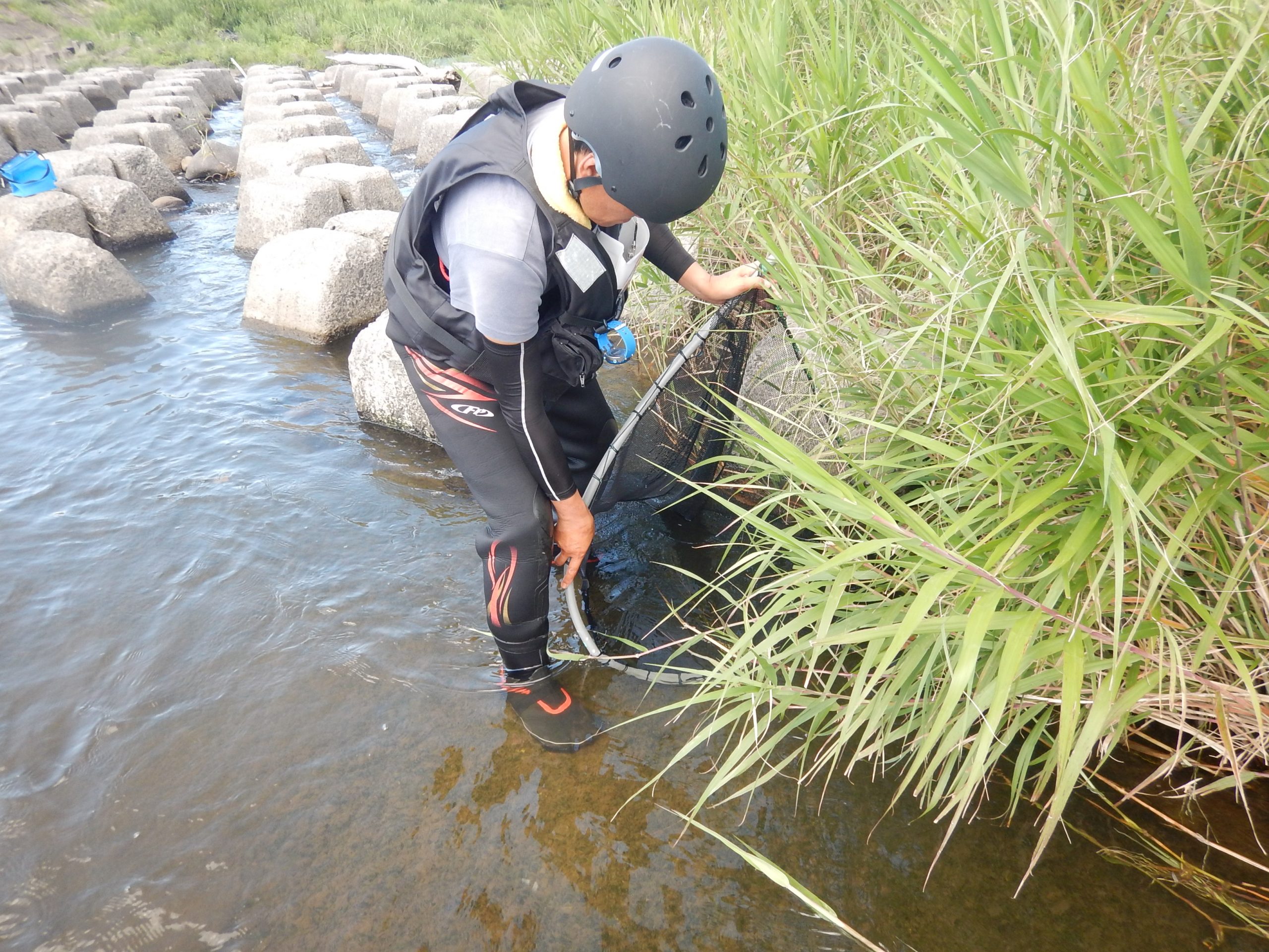 岩木川取水堰魚類調査の模様